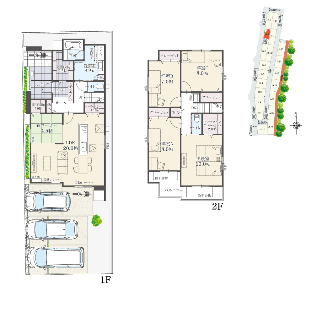 ・駐車台数は、区画図または各間取り図に表示の自動車サイズを想定しております。車種によっては駐車台数が異なる場合があります。