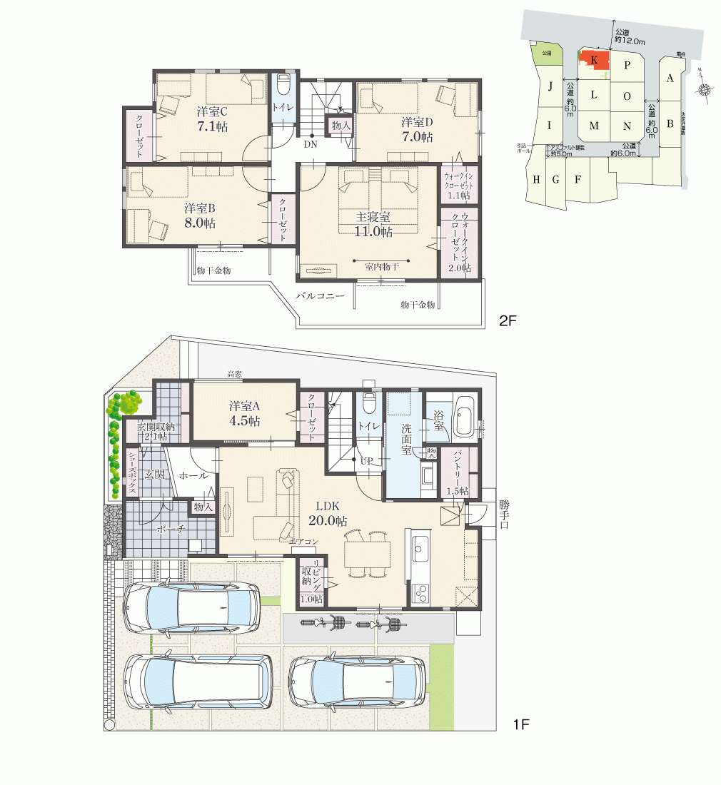 ・駐車台数は、区画図または各間取り図に表示の自動車サイズを想定しております。車種によっては駐車台数が異なる場合があります。