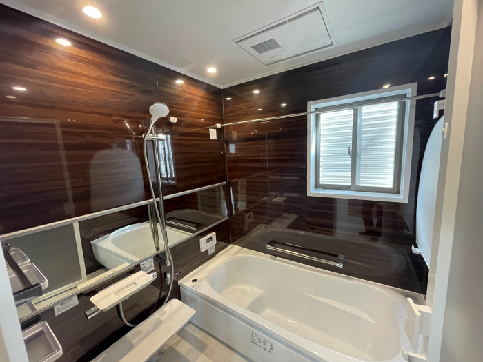 少し大きめ1717(1坪)サイズ。バリアフリー仕様のシステムバス。保温材付きの魔法びん浴槽。お掃除ラクラクほっカラリ床。