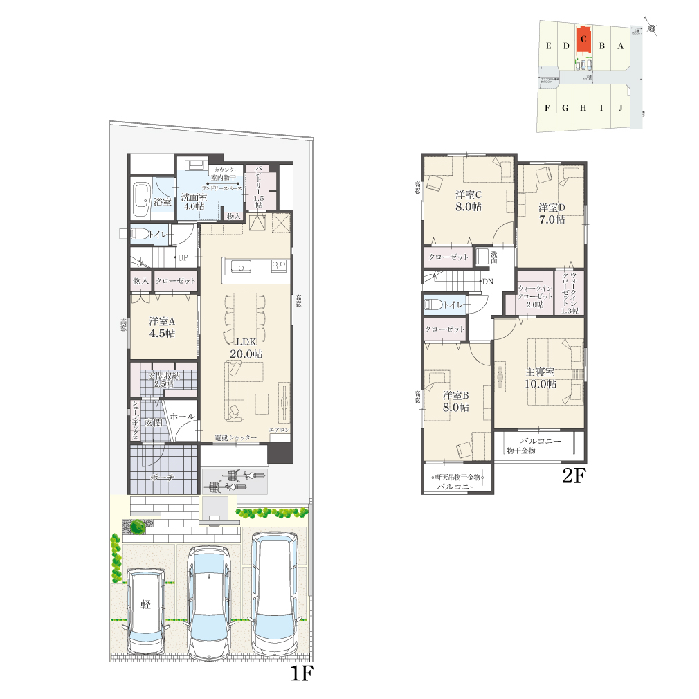 ・駐車台数は、区画図または各間取り図に表示の自動車サイズを想定しております。車種によっては駐車台数が異なる場合があります。