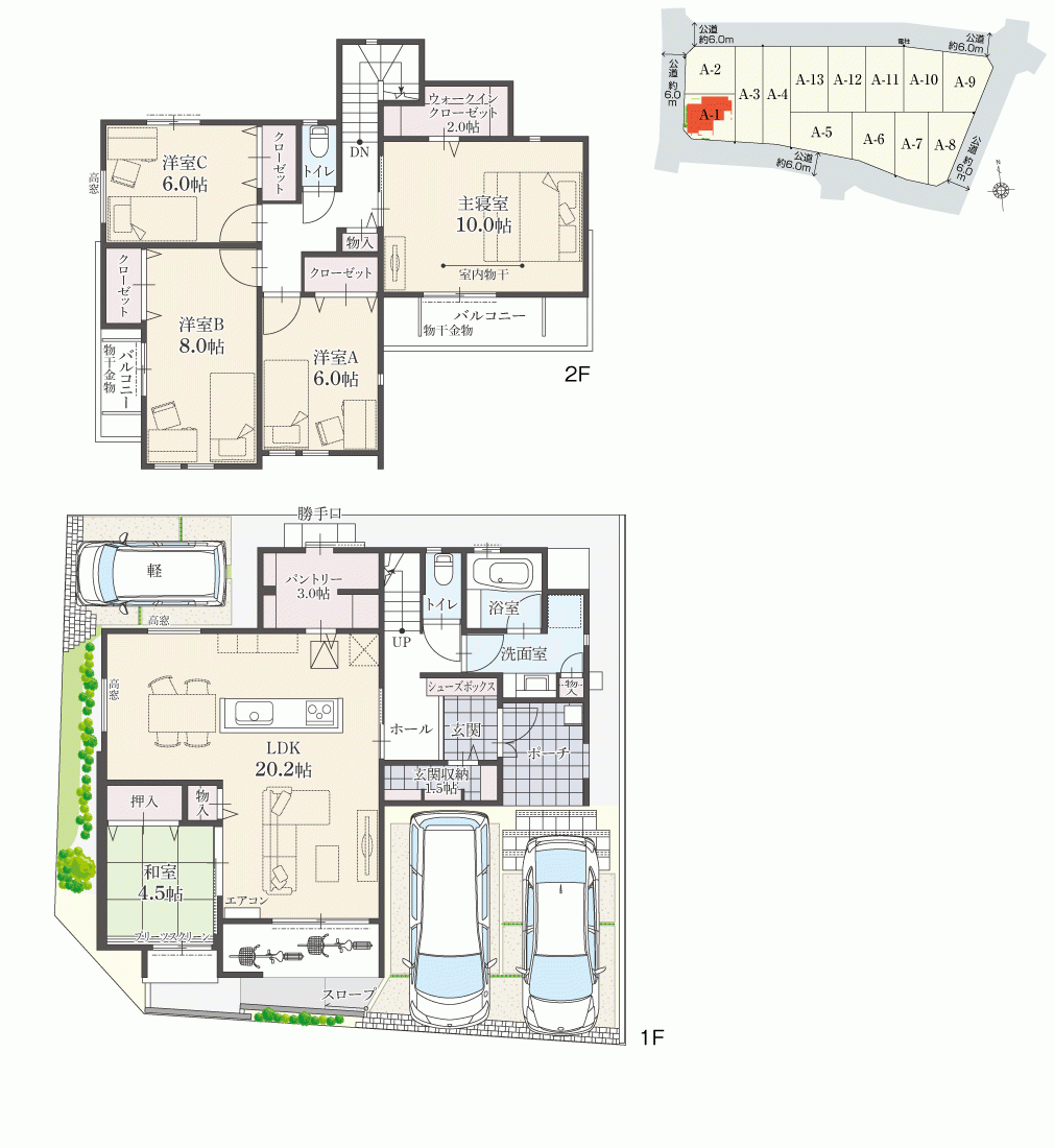 ・駐車台数は、区画図または各間取り図に表示の自動車サイズを想定しております。車種によっては駐車台数が異なる場合があります。