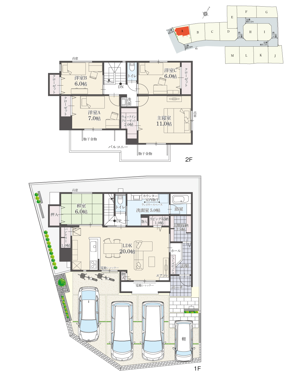・駐車台数は、区画図または各間取り図に表示の自動車サイズを想定しております。車種によっては駐車台数が異なる場合があります。