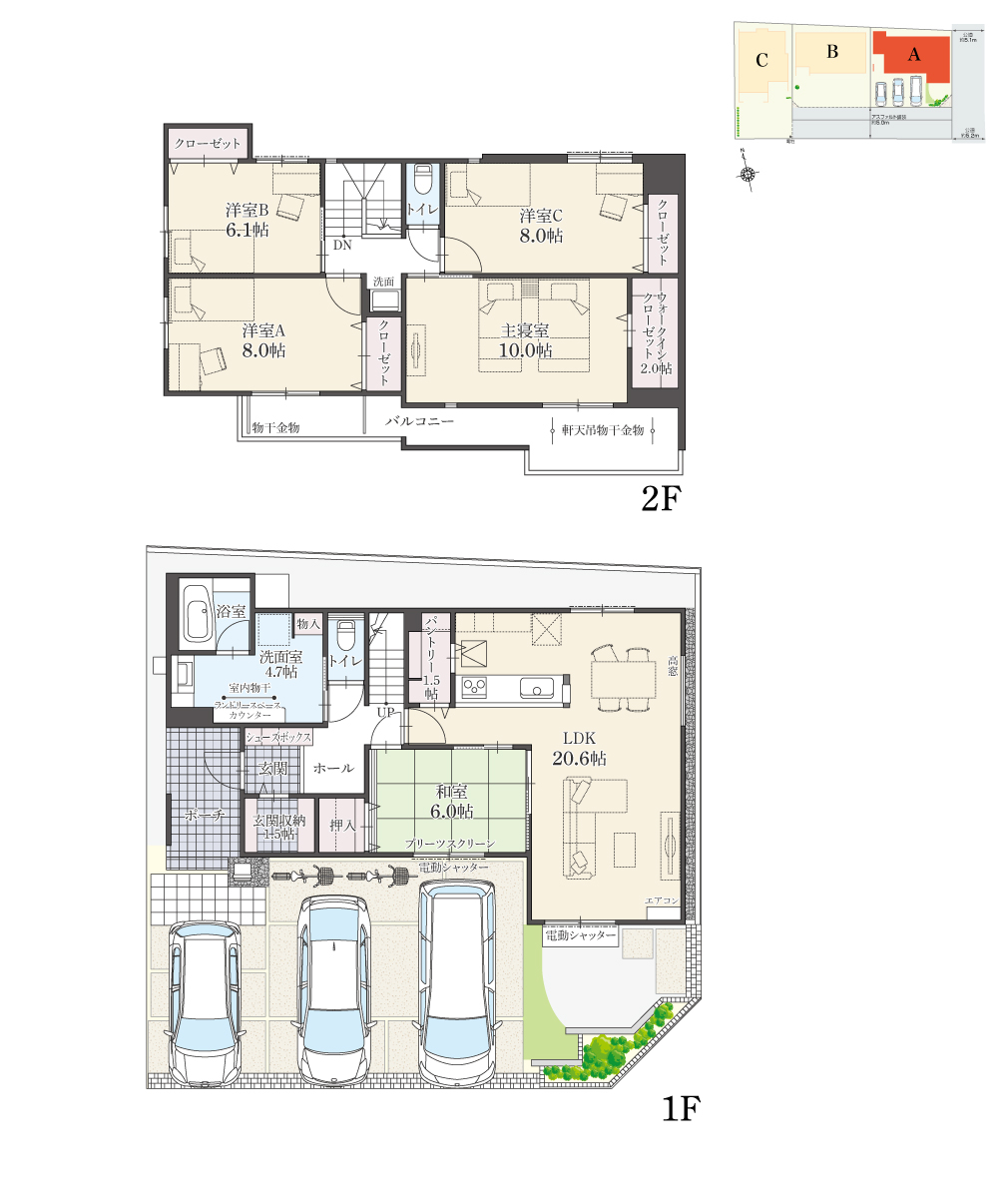 ・駐車台数は、区画図または各間取り図に表示の自動車サイズを想定しております。車種によっては駐車台数が異なる場合があります。