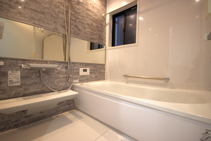 少し大きめ1717(1坪)サイズ。バリアフリー仕様のシステムバス。保温材付きの魔法びん浴槽。お掃除ラクラクほっカラリ床。