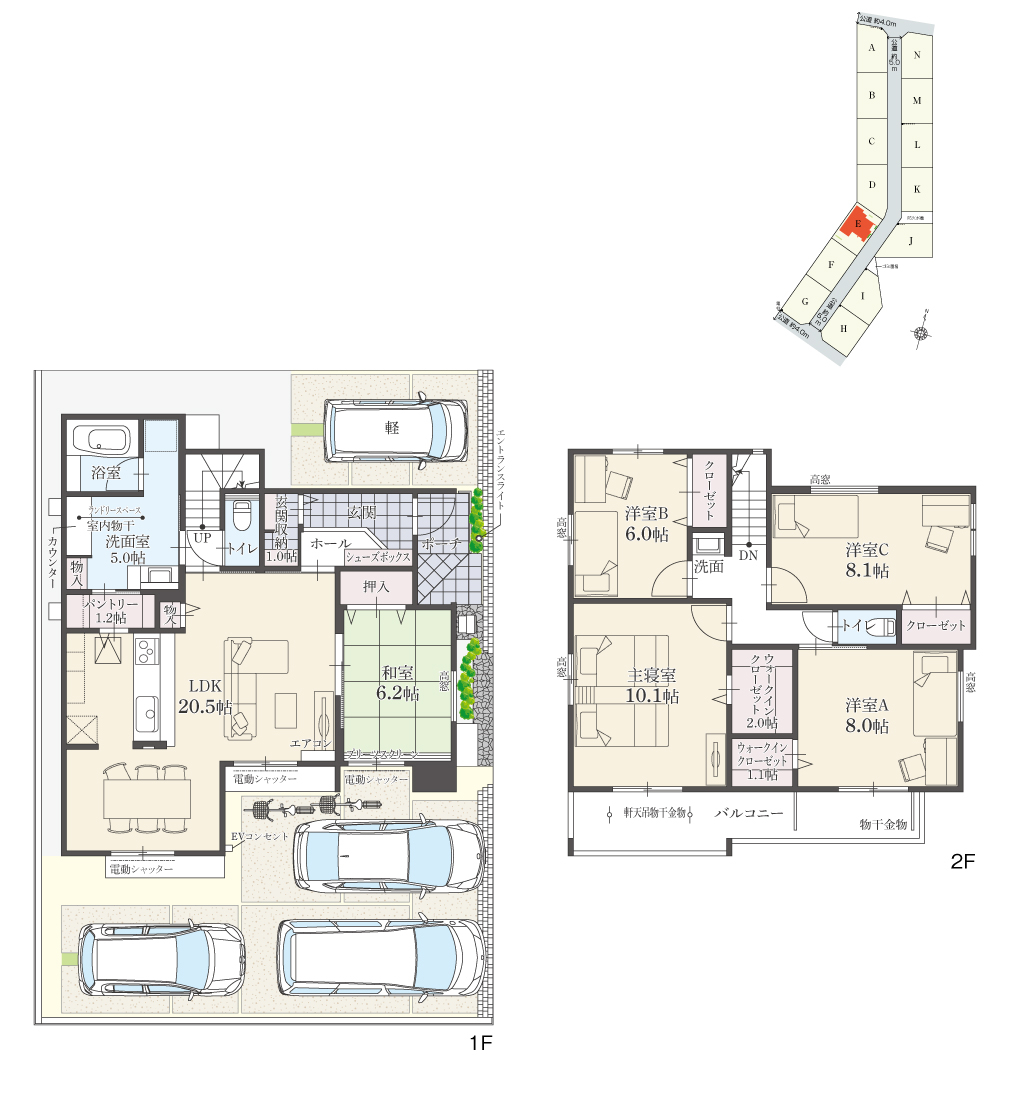 ・駐車台数は、区画図または各間取り図に表示の自動車サイズを想定しております。車種によっては駐車台数が異なる場合があります。