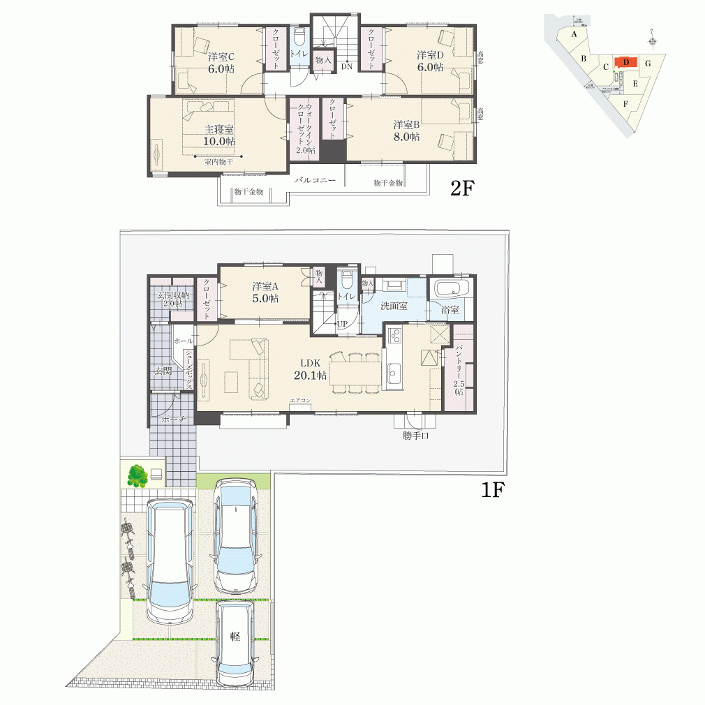 ・駐車台数は、区画図または各間取り図に表示の自動車サイズを想定しております。車種によっては駐車台数が異なる場合があります。