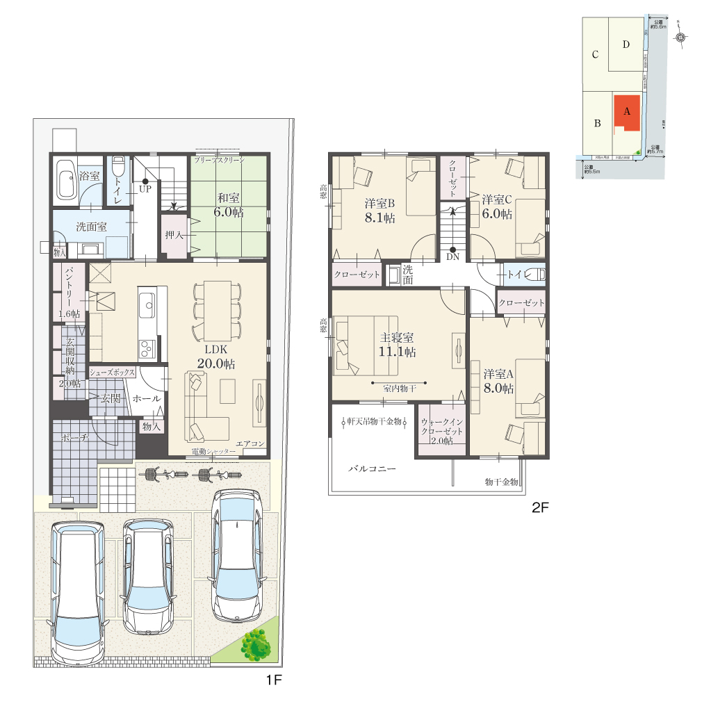 ・駐車台数は、区画図または各間取り図に表示の自動車サイズを想定しております。車種によっては駐車台数が異なる場合があります。