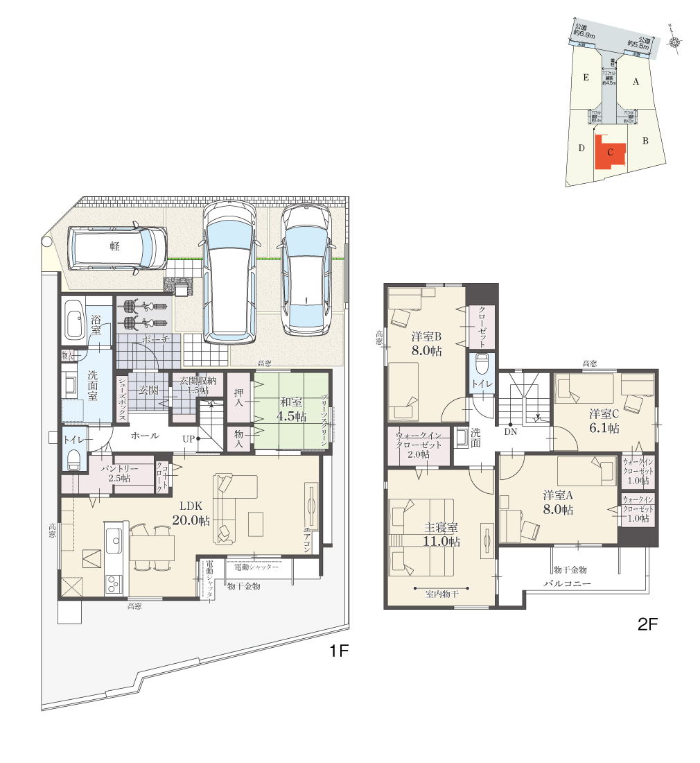 ・駐車台数は、区画図または各間取り図に表示の自動車サイズを想定しております。車種によっては駐車台数が異なる場合があります。