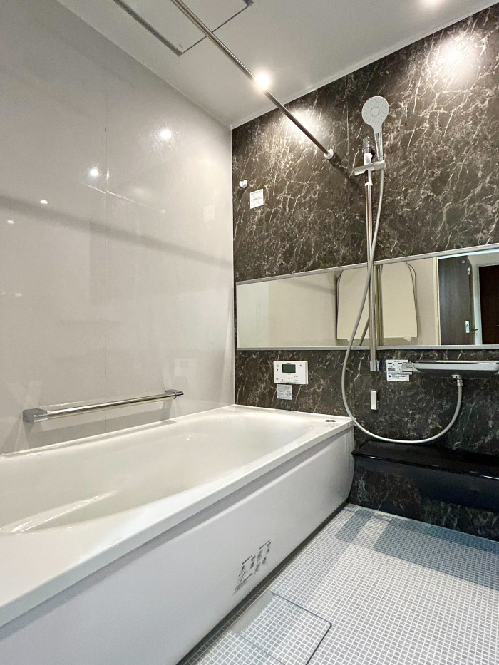 少し大きめ1717(1坪)サイズ。バリアフリー仕様のシステムバス。保温材付きの魔法びん浴槽。お掃除ラクラクほっカラリ床。