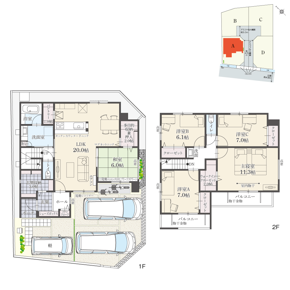 - 間取り:5LDK+ 多目的収納+ ウォークインクローゼット+ 玄関収納+ コートクローク+ パントリー