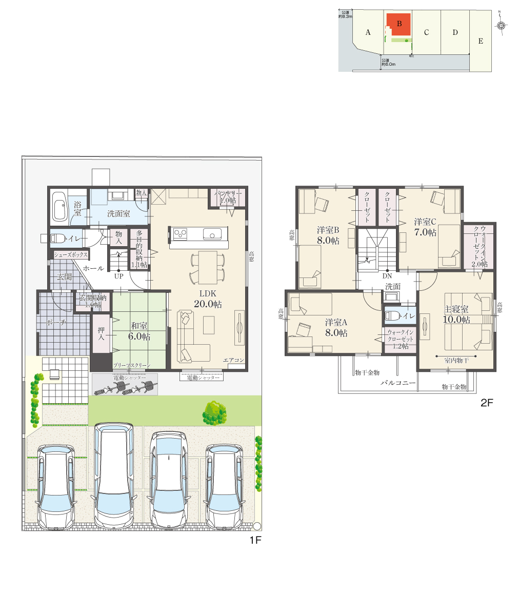・駐車台数は、区画図または各間取り図に表示の自動車サイズを想定しております。車種によっては駐車台数が異なる場合があります。