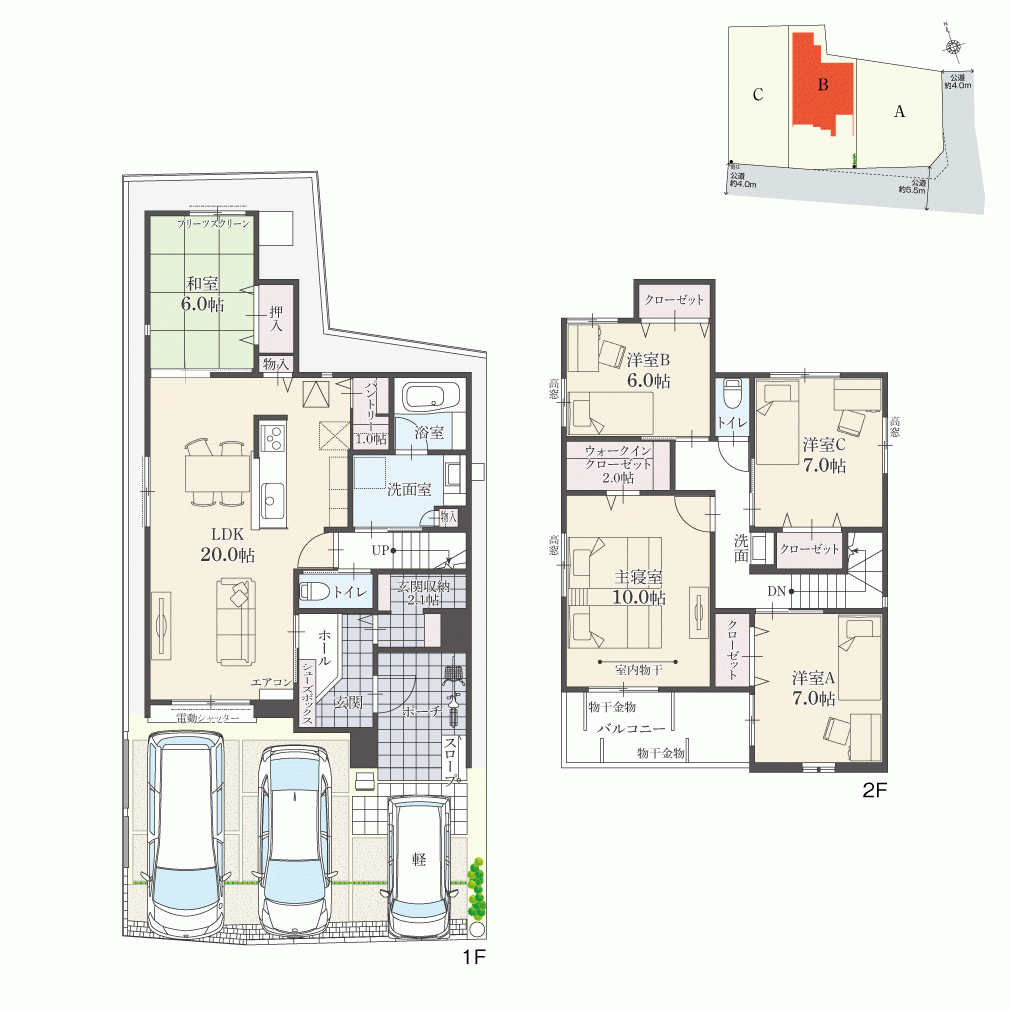 ・駐車台数は、区画図または各間取り図に表示の自動車サイズを想定しております。車種によっては駐車台数が異なる場合があります。