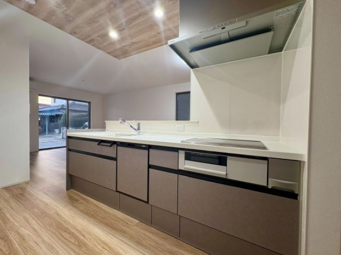 庫内が深く容量も大きい深型食洗機。たくさんの食器、鍋やフライパンなど大きな調理器具も一緒に洗えて便利。奥までフルに引き出せて、真上からラクにセット可能。