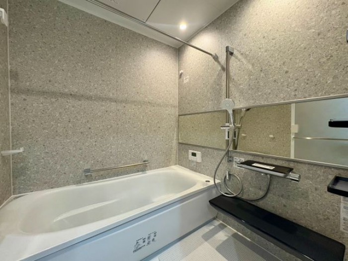 少し大きめ1717(1坪)サイズ。バリアフリー仕様のシステムバス。保温材付きの魔法びん浴槽。お掃除ラクラクほっカラリ床。