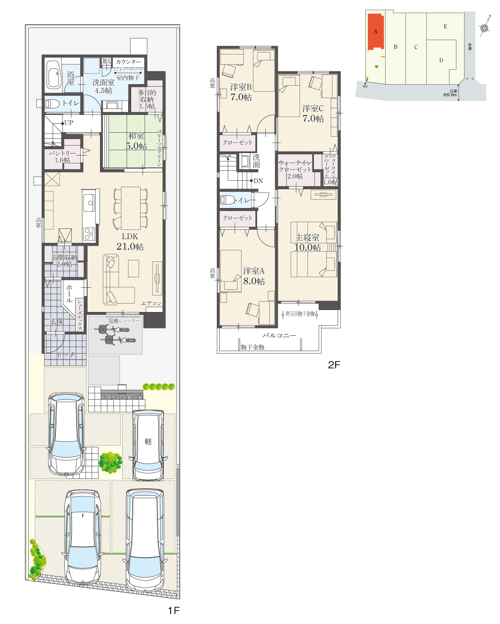 ・駐車台数は、区画図または各間取り図に表示の自動車サイズを想定しております。車種によっては駐車台数が異なる場合があります。