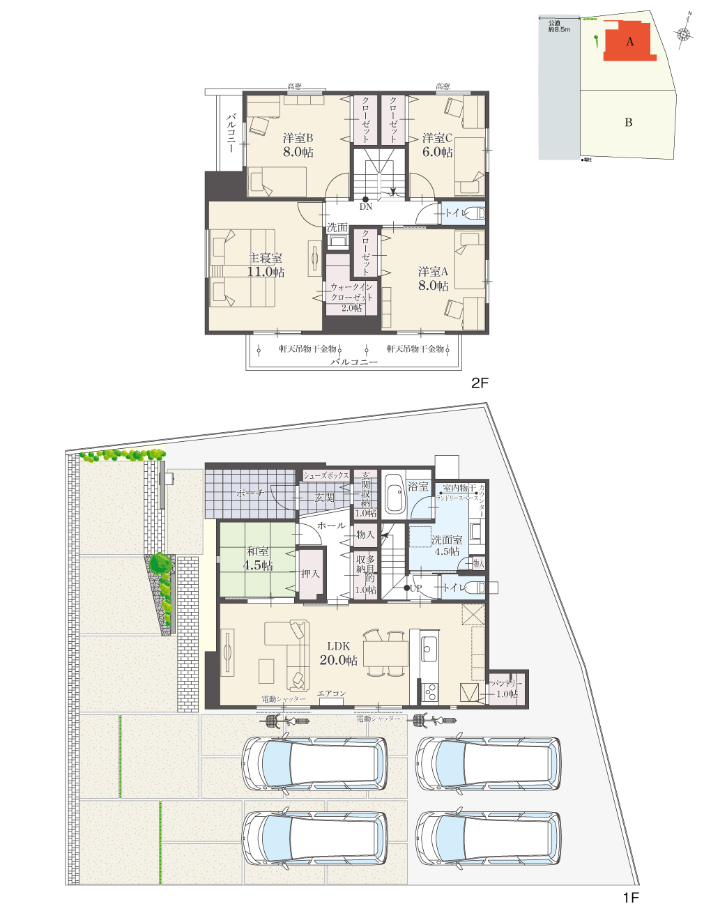 ・駐車台数は、区画図または各間取り図に表示の自動車サイズを想定しております。車種によっては駐車台数が異なる場合があります。