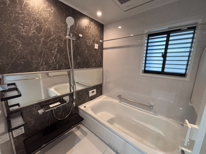 少し大きめ1717(1坪)サイズ。バリアフリー仕様のシステムバス。保温材付きの魔法びん浴槽。お掃除ラクラクほっカラリ床。