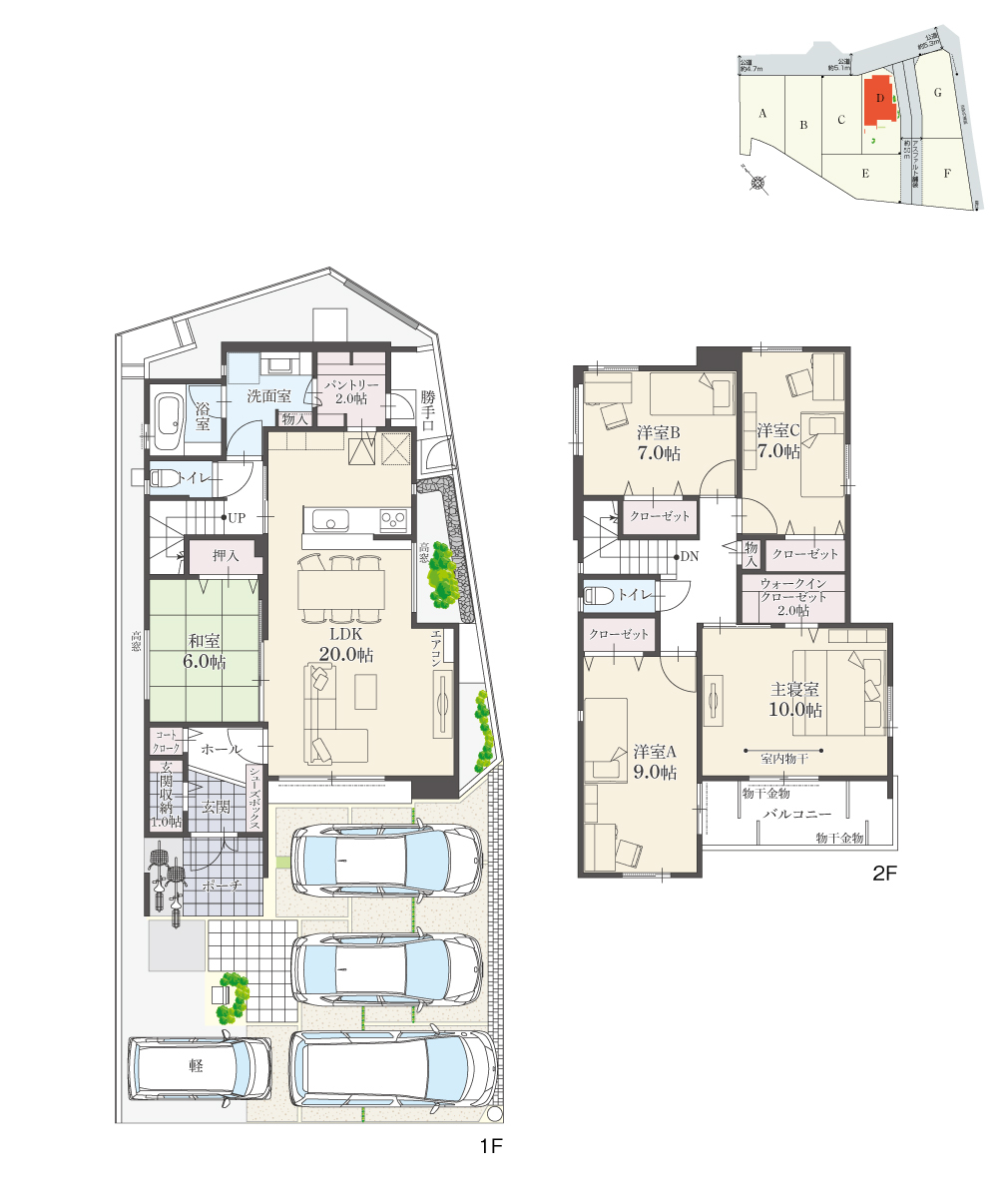 ・駐車台数は、区画図または各間取り図に表示の自動車サイズを想定しております。車種によっては駐車台数が異なる場合があります。
