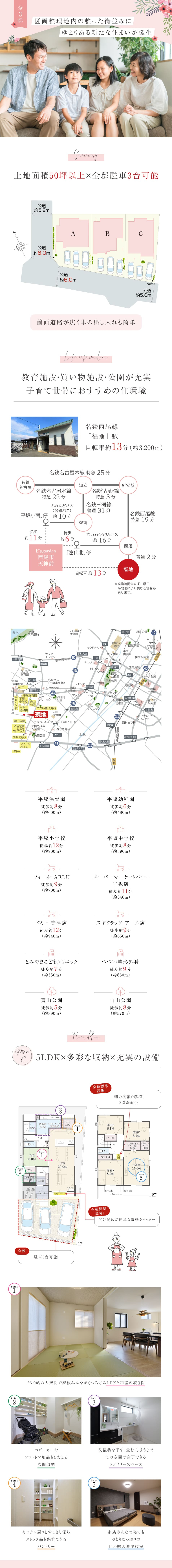 - 間取り:5LDK+ ウォークインクローゼット+ 玄関収納+ パントリー+ ランドリースペース