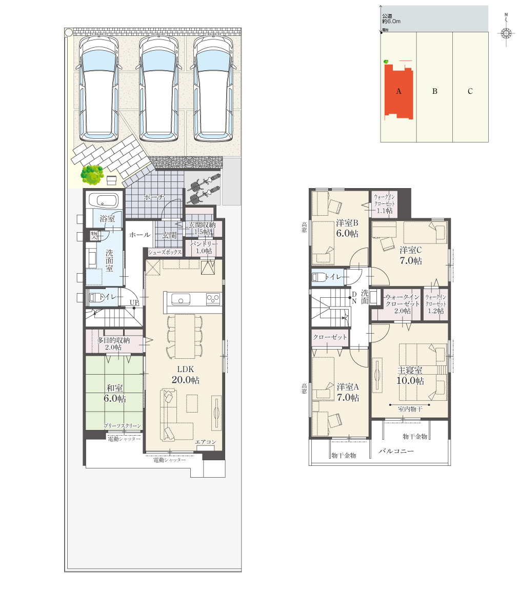 ・駐車台数は、区画図または各間取り図に表示の自動車サイズを想定しております。車種によっては駐車台数が異なる場合があります。