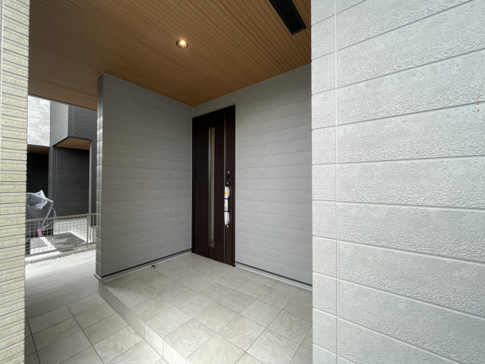 扉を閉めれば玄関はいつも綺麗。土間なのでベビーカーや砂のついたおもちゃもそのまましまえます。