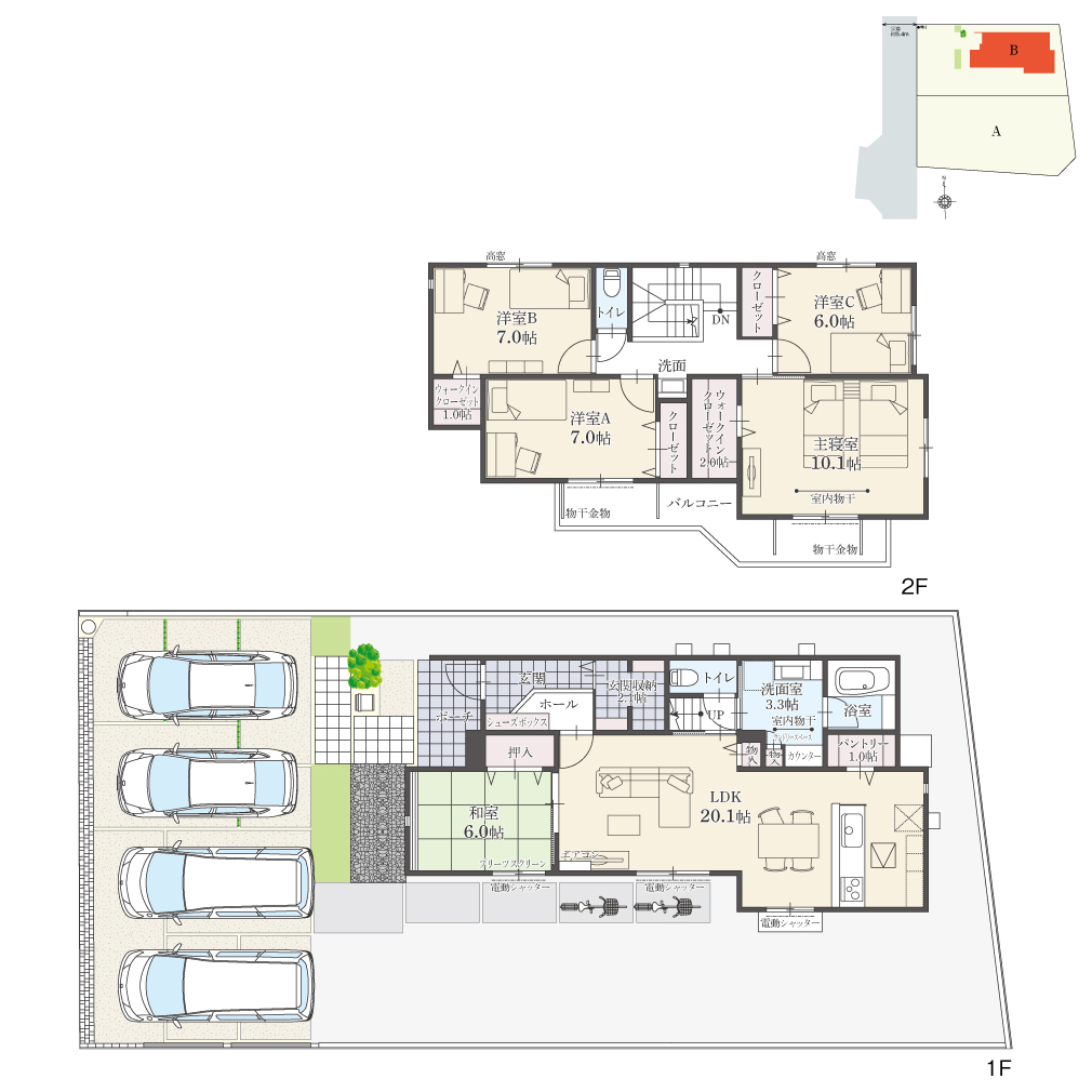 ・駐車台数は、区画図または各間取り図に表示の自動車サイズを想定しております。車種によっては駐車台数が異なる場合があります。