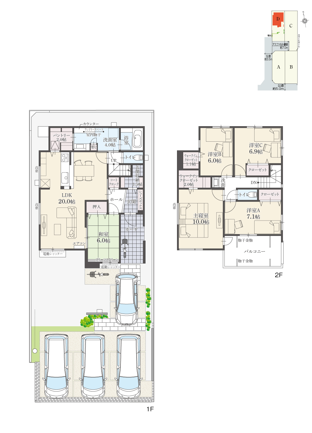 ・駐車台数は、区画図または各間取り図に表示の自動車サイズを想定しております。車種によっては駐車台数が異なる場合があります。