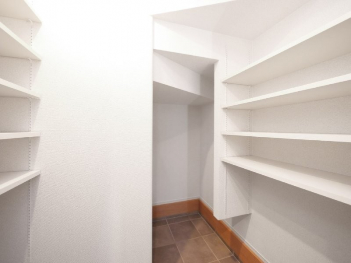 タオルや着替え、洗剤のストック品など何でも収納できる大きな物入。
