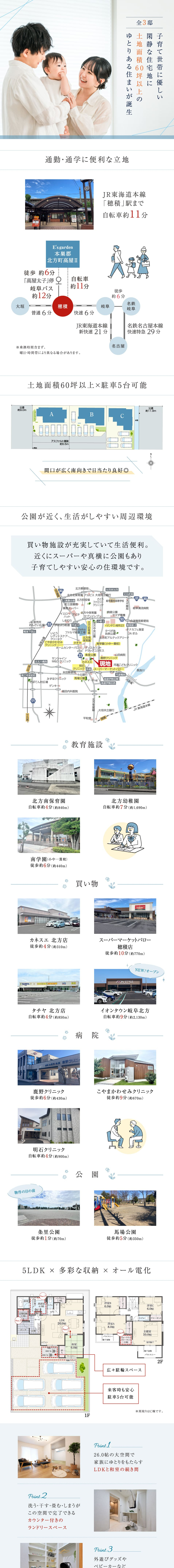 ホーム > 新築一戸建て住宅を探す > E's garden 本巣郡北方町高屋Ⅱ