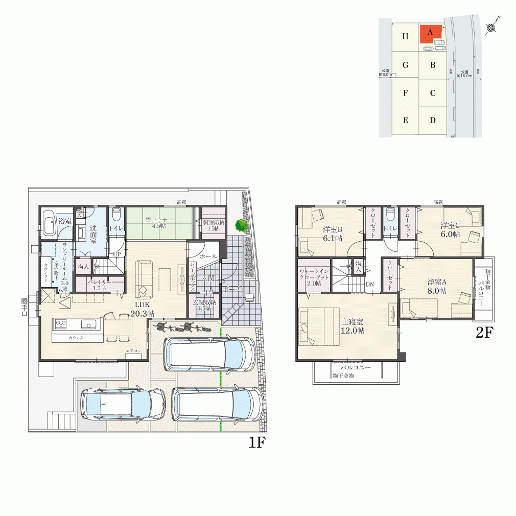 ・駐車台数は、区画図または各間取り図に表示の自動車サイズを想定しております。車種によっては駐車台数が異なる場合があります。