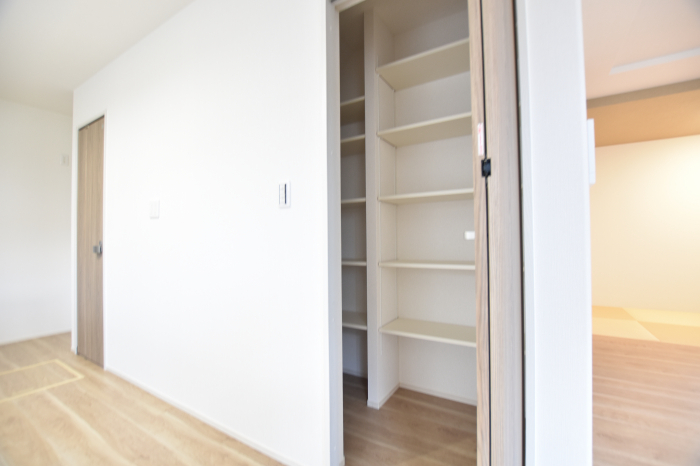 洋服や小物がしっかり収納できる大型の収納空間を確保しました。居室をすっきり保ち、より広さを感じていただけます。
