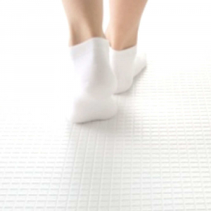 表面の水を誘導し、翌朝にはカラリと乾き靴下のまま入っても大丈夫。親水パワーの効果で軽くこすれば汚れがスッキリ、お掃除もラクラク。