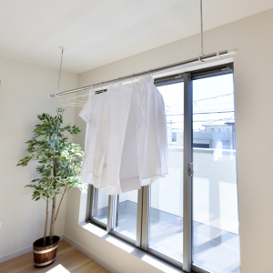 ポールがワンタッチで着脱可能なスポット型物干し。 非使用時は壁掛けフックに収納でお部屋スッキリ。雨や台風のシーズンや花粉の季節でも安心して洗濯物を干せる。急な雨の時もパッと室内に取り込むのに便利。