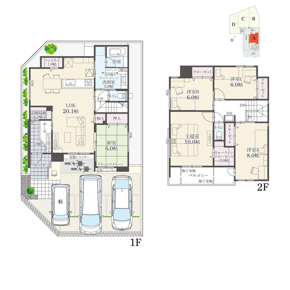 ・駐車台数は、区画図または各間取り図に表示の自動車サイズを想定しております。車種によっては駐車台数が異なる場合があります。
