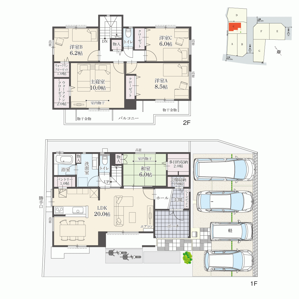 ・駐車台数は、区画図または各間取り図に表示の自動車サイズを想定しております。車種によっては駐車台数が異なる場合があります。