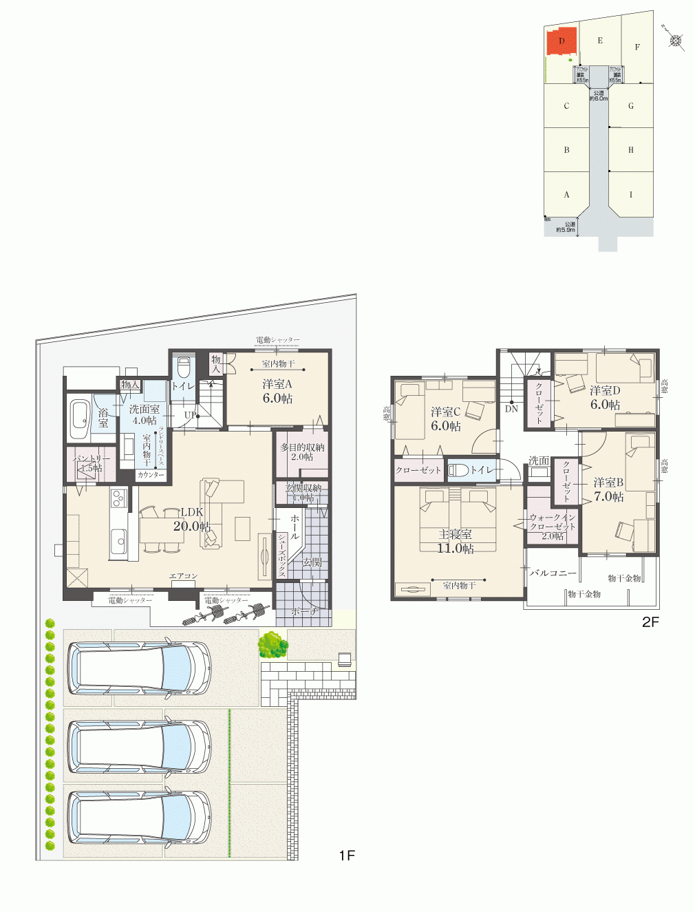 ・駐車台数は、区画図または各間取り図に表示の自動車サイズを想定しております。車種によっては駐車台数が異なる場合があります。