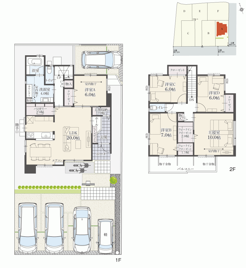 ・駐車台数は、区画図または各間取り図に表示の自動車サイズを想定しております。車種によっては駐車台数が異なる場合があります。