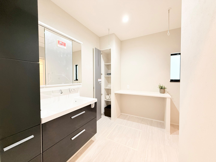お掃除ラクラク、鏡の後ろにもたっぷり収納できるシャンプードレッサー。