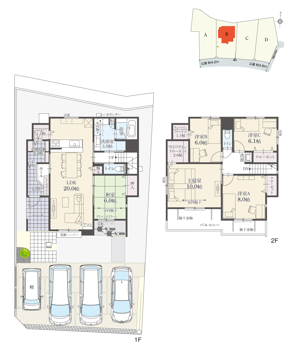 ・駐車台数は、区画図または各間取り図に表示の自動車サイズを想定しております。車種によっては駐車台数が異なる場合があります。