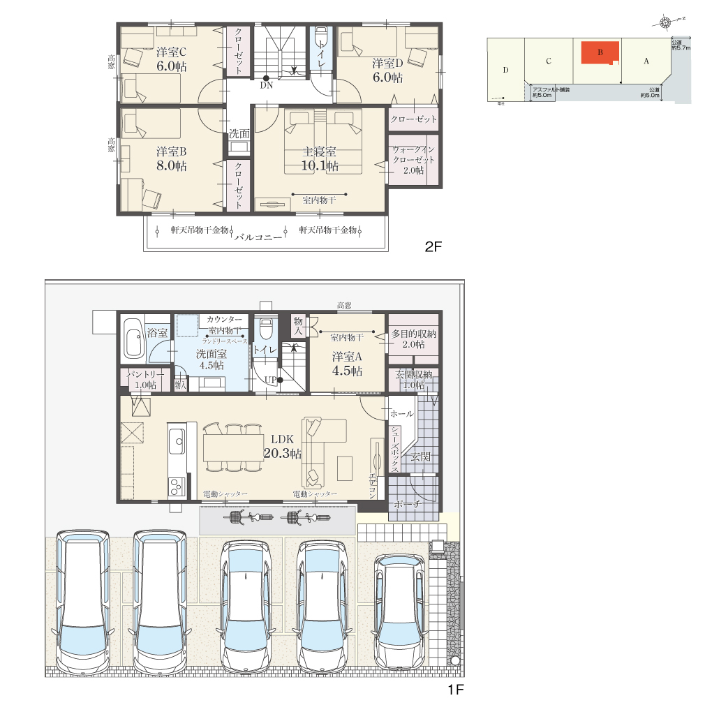 ・駐車台数は、区画図または各間取り図に表示の自動車サイズを想定しております。車種によっては駐車台数が異なる場合があります。