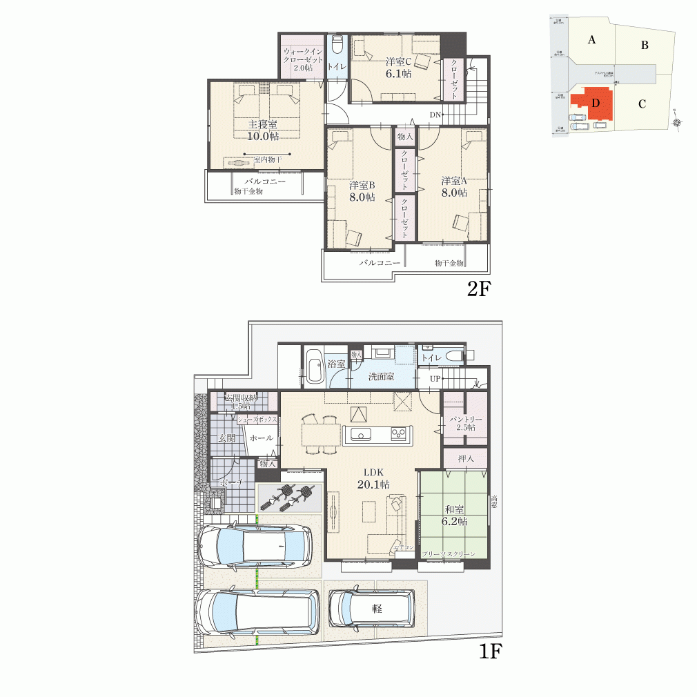 ・駐車台数は、区画図または各間取り図に表示の自動車サイズを想定しております。車種によっては駐車台数が異なる場合があります。