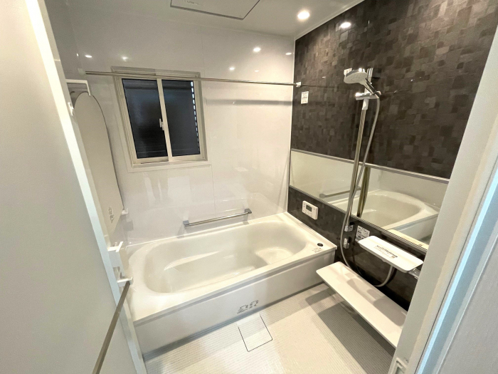 少し大きめ1717(1坪)サイズ。バリアフリー仕様のシステムバス。保温材付きの魔法びん浴槽。お掃除ラクラクほっカラリ床。