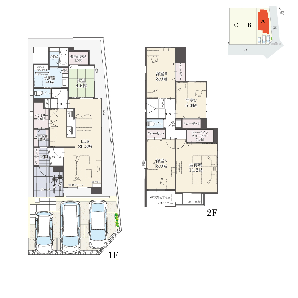 ・駐車台数は、区画図または各間取り図に表示の自動車サイズを想定しております。車種によっては駐車台数が異なる場合があります。
