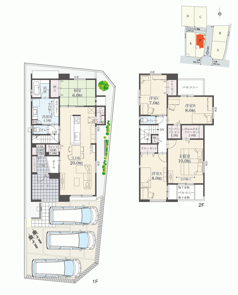 ・駐車台数は、区画図または各間取り図に表示の自動車サイズを想定しております。車種によっては駐車台数が異なる場合があります。