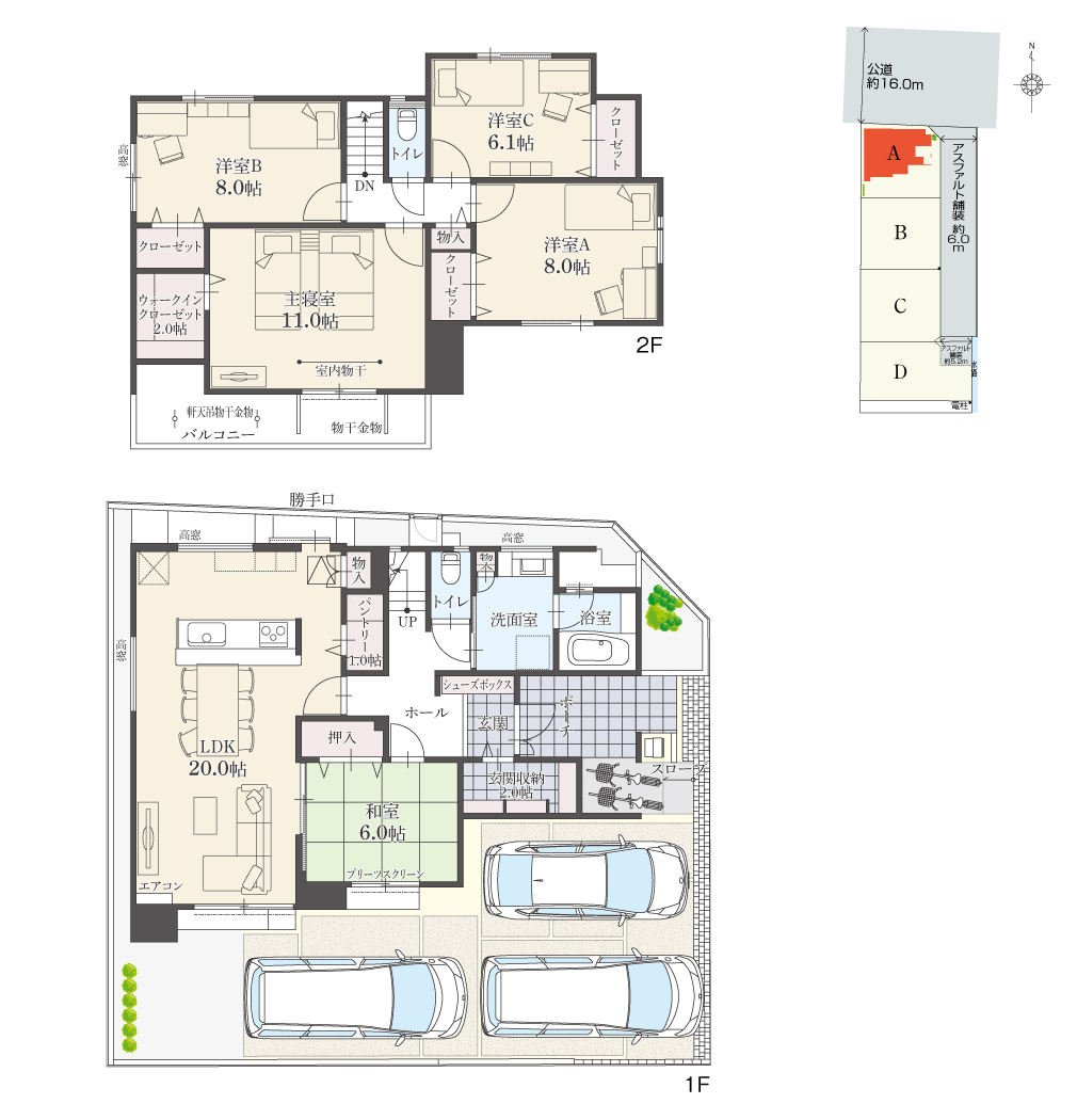 ・駐車台数は、区画図または各間取り図に表示の自動車サイズを想定しております。車種によっては駐車台数が異なる場合があります。
