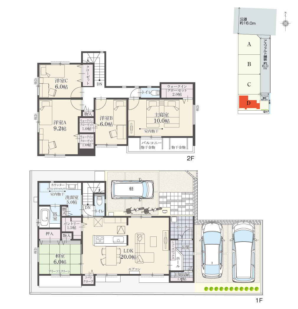 - 間取り:5LDK+ 3ウォークインクローゼット+ 玄関収納+ コートクローク+ パントリー+ ランドリースペース