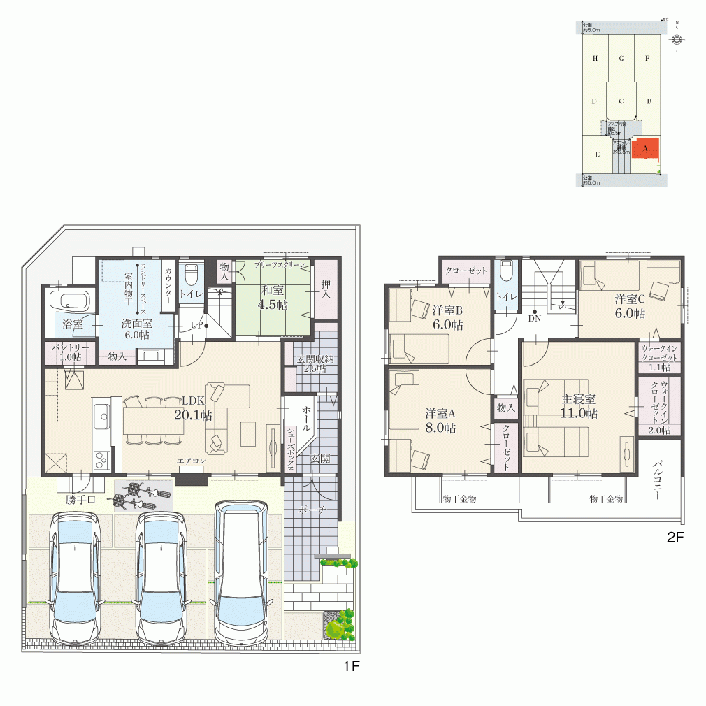 ・駐車台数は、区画図または各間取り図に表示の自動車サイズを想定しております。車種によっては駐車台数が異なる場合があります。