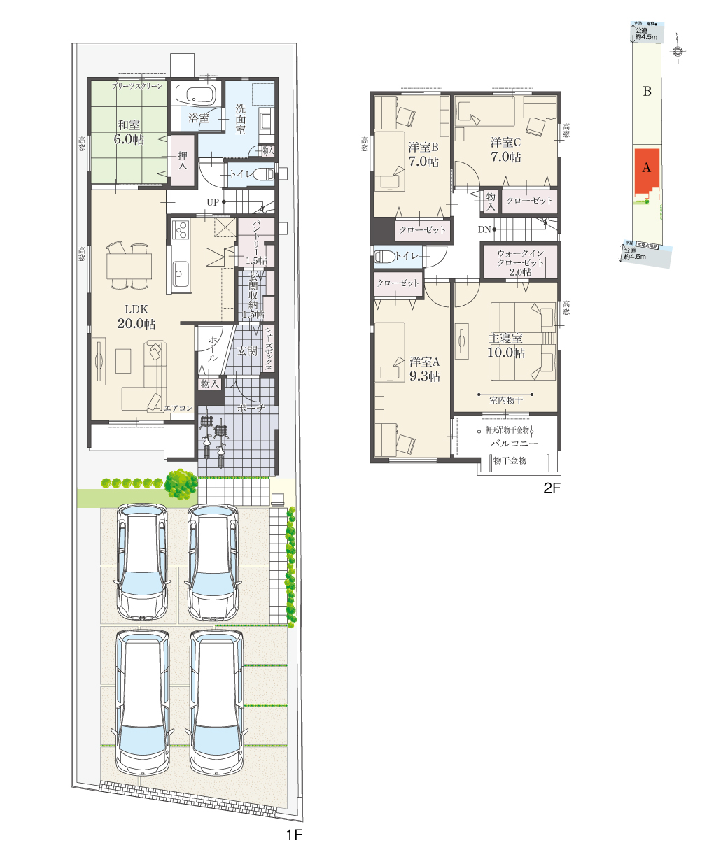 ・駐車台数は、区画図または各間取り図に表示の自動車サイズを想定しております。車種によっては駐車台数が異なる場合があります。
