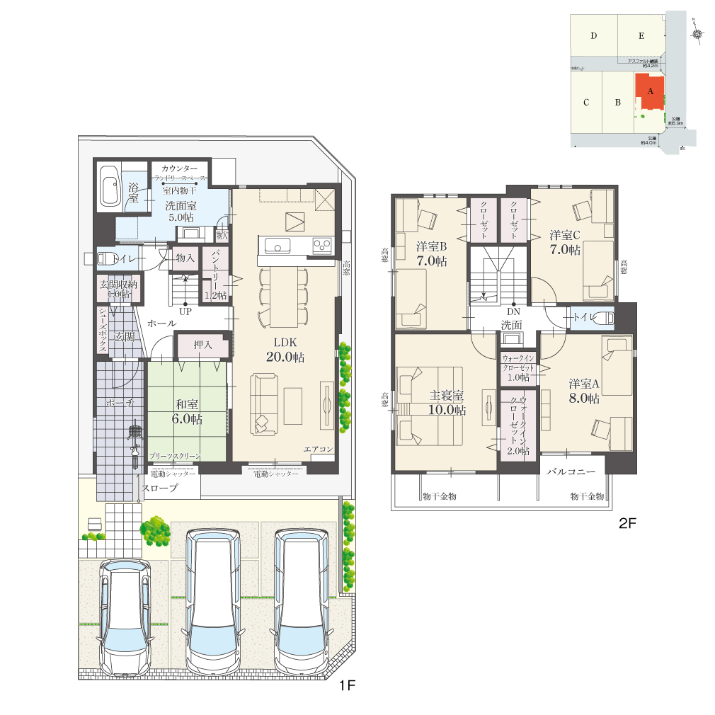 ・駐車台数は、区画図または各間取り図に表示の自動車サイズを想定しております。車種によっては駐車台数が異なる場合があります。