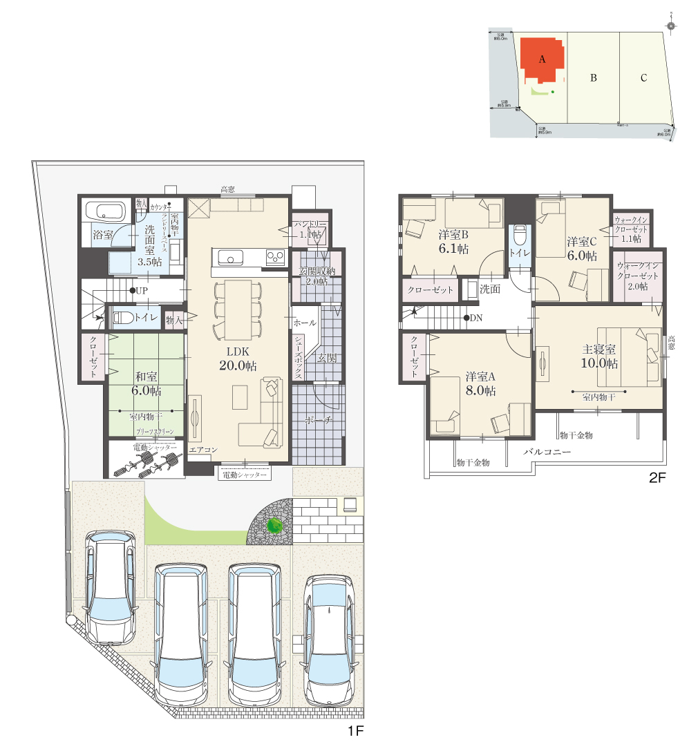 ・駐車台数は、区画図または各間取り図に表示の自動車サイズを想定しております。車種によっては駐車台数が異なる場合があります。